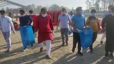 पीएम की रैली से पूर्व भाजपा कार्यकर्ताओं ने मैदान में चलाया स्वच्छता अभियान