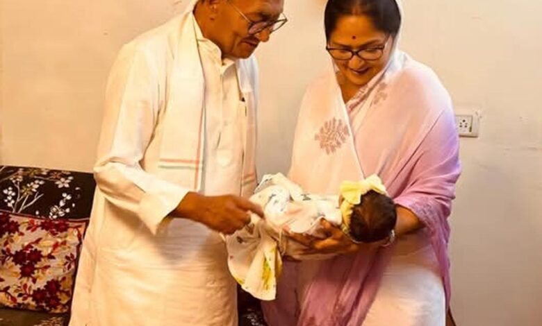 पूर्व मंत्री पीसी शर्मा ने अपने फेसबुक अकाउंट पर पोस्ट डालते हुए लिखा कि मेरे सुपुत्र शिवी शर्मा एवं वधू रूपाली शिवी शर्मा को अक्षय तृतीया के शुभ अवसर पर कन्यारत्न की प्राप्ति हुई। यह हमारे परिवार के लिए अत्यंत हर्ष व सौभाग्य का विषय है। गत दिवस हमारे निवास पर पूर्व मुख्यमंत्री एवं वर्तमान सांसद माननीय दिग्विजय सिंह एवं अमृता राव जी का आगमन हुआ। उन्होंने हमारी नवजात पौत्री को अपने स्नेहिल आशीर्वाद से अभिषिक्त किया। साथ ही वायुसेना की विंग कमांडर वीरांगना व्योमिका सिंह जी के नाम पर मेरी पौत्री का नामकरण किया गया।