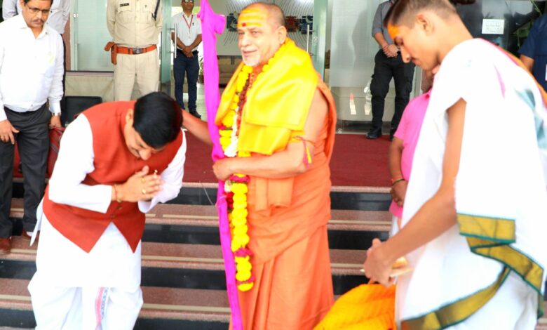 राजकीय विमानतल पर मुख्यमंत्री डॉ. यादव ने पूज्य पाद जगद्गुरु शंकराचार्य स्वामी सदानंद सरस्वती जी महाराज का विधिवत अभिवादन किया। इस अवसर पर उन्होंने महाराज श्री को अंगवस्त्र और श्रीफल भेंट कर उनका सम्मान किया। मुख्यमंत्री ने इस भेंट को अपना सौभाग्य बताते हुए कहा कि संतों के सान्निध्य से ही जनकल्याण के कार्यों को नई ऊर्जा और दृष्टि प्राप्त होती है।