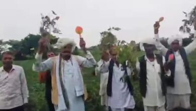 बीमा राशि से नाखुश किसान, खेत में झुनझुना बजाकर किया विरोध, बोले- जितनी राशि काटी, उतनी भी नहीं मिली