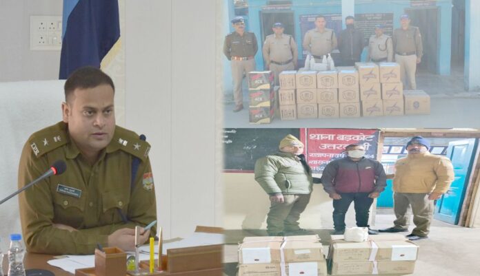 उत्तरकाशी। शराब तस्करों पर बड़ी कार्यवाही करते हुए पुलिस ने अलग अलग क्षेत्रों से दो तस्करों को गिरफ्तार कर लिया है। जिनके कब्जे से 54 पेटी शराब व बीयर बरामद की गयी है।