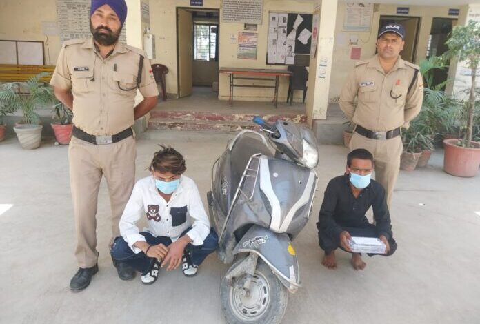 प्राप्त जानकारी के अनुसार अनिल पुत्र दीपक निवासी ट्रांसपोर्टनगर सेवलाकला खुर्द कोतवाली पटेलनगर द्वारा थाना पटेलनगर पर एक प्रार्थना पत्र दिया कि 14 अप्रैल 2024 को लालपुल से ट्रांसपोर्टनगर की ओर जाते समय स्कूटी सवार 02 लडको द्वारा उनके हाथ से उसका मोबाइल फोन छीन लिया और मौके से फरार हो गये। पुलिस ने मुकदमा दर्ज कर जांच शुरू कर दी। घटना की गम्भीरता के दृष्टिगत घटना के खुलासे हेतु एसएसपी अजय सिंह द्वारा दिए गए निर्देशों पर प्रभारी निरीक्षक पटेलनगर कमल कुमार लुण्ठी द्वारा थाना स्तर पर पुलिस टीम गठित की गई। गठित पुलिस टीम द्वारा घटना स्थल का निरीक्षण कर व पीडित व्यक्ति से घटना के संबंध में जानकारी प्राप्त की। पुलिस द्वारा किये जा रहे प्रयासों के परिणामस्वरूप आज पुलिस टीम को मिली सूचना पर घटना को अंजाम देने वाले 02 आरोपियोंकृअरमान पुत्र इसरारए अकरम पुत्र असलम को चन्द्रबनी चौक से चन्द्रबनी की ओर जाने वाली सडक से गिरफ्तार किया गया। गिरफ्तार आरोपियों के कब्जे से 01 मोबाइल फोन व घटना मे प्रयुक्त स्कूटी ;एक्टिवाद्ध बरामद की गई। बरामद स्कूटी के संबंध में जानकारी करने पर उक्त स्कूटी में लकी नंबर प्लेट फर्जी पाई गई इसके संबंध में जानकारी करने पर उनके द्वारा बताया गया कि उक्त स्कूटी को उनके द्वारा नशे की हालत में देहरादून में एक पार्किंग से चोरी किया गया थाए तथा पुलिस से बचने के लिए उनके द्वारा स्कूटी में बुलेट मोटरसाइकिल के नंबर का इस्तेमाल किया जा रहा थाए 14 अप्रैल को ट्रांर्सपोर्टनगर के पास मोबाइल लूट की घटना में भी उनके द्वारा उत्तफ चोरी की स्कूटी का इस्तेमाल किया गया था। पुलिस ने दोनों के खिलाफ मुुकदमा दर्ज कर उनको न्यायालय में पेश किया जहां से उनको न्यायिक हिरासत में जेल भेज दिया।