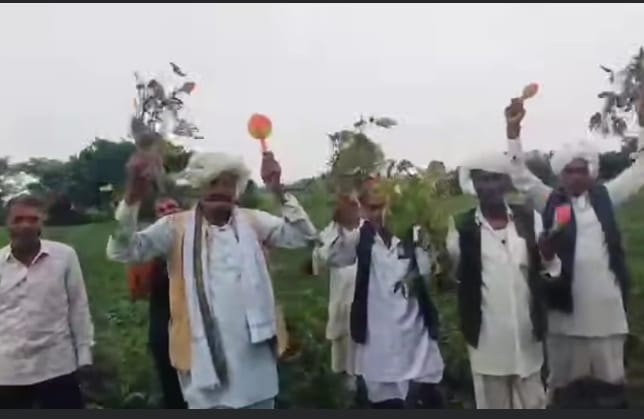बीमा राशि से नाखुश किसान, खेत में झुनझुना बजाकर किया विरोध, बोले- जितनी राशि काटी, उतनी भी नहीं मिली