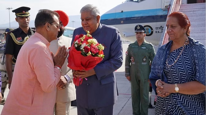 देहरादून। उपराष्ट्रपति जगदीप धनखड़ उत्तराखंड दौरे पर पहुंचे हैं। देहरादून एयरपोर्ट पहुंचने पर राज्यपाल लेफ्टिनेंट जनरल (सेनि) गुरमीत सिंह और राज्य सरकार के प्रतिनिधि के रूप में कैबिनेट मंत्री डॉ प्रेमचंद अग्रवाल ने उनका स्वागत किया। चुनरी और गंगाजल भेंट कर उनका स्वागत किया गया। शुक्रवार को जौलीग्रांट एयरपोर्ट पर उपराष्ट्रपति जगदीप धनखड़ अपनी धर्मपत्नी डॉ सुदेश धनखड़ के साथ पहुंचे। इस दौरान कैबिनेट मंत्री अग्रवाल ने उपराष्ट्रपति व उनकी धर्मपत्नी को माता की चुनरी ओढ़ाकर देवभूमि आगमन पर स्वागत किया। साथ ही उपराष्ट्रपति जगदीप धनखड़ को चारधाम यात्रा पर आने का निमंत्रण भी दिया।उपराष्ट्रपति जगदीप धनखड़ यहां से लाल बहादुर शास्त्री राष्ट्रीय प्रशासन अकादमी मसूरी पहुंचे। एलबीएस अकादमी के आईएएस अधिकारियों के फेज एक के समापन समारोह में शिरकत कर उन्होंने अकादमी के संकाय सदस्यों के साथ भी चर्चा की।
